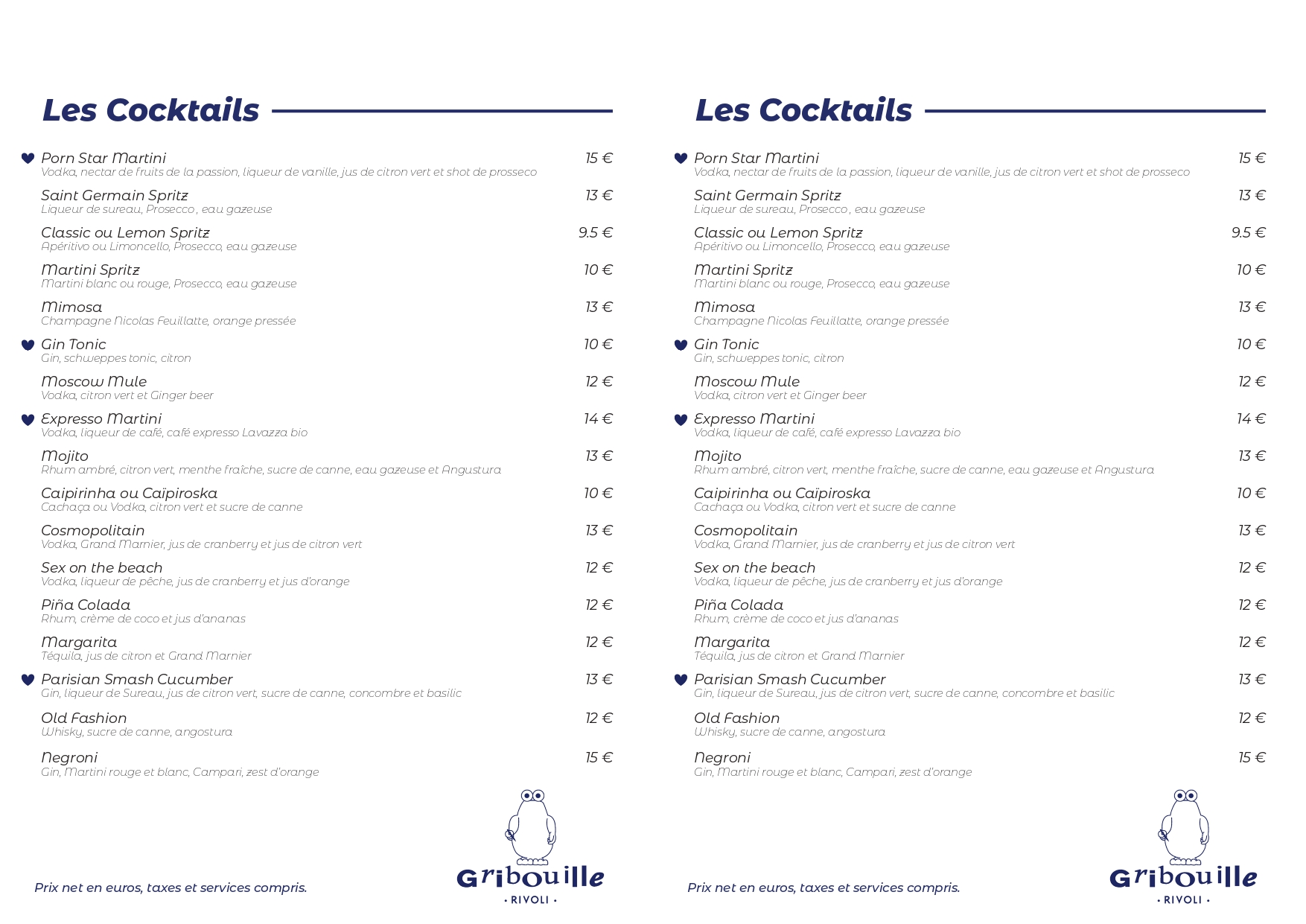 • Carte boissons